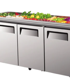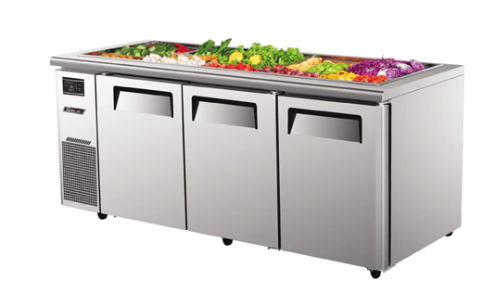 BÀN MÁT SALAD 3 CÁNH 1M8 TURBO AIR KSR18-3 được nhập khẩu trực tiếp từ Hàn Quốc, sử dụng trong các cửa hàng ăn uống như Buffet , cửa hàng thực phẩm , các khu vực nhà hàng – khách sạn …được thiết kế dưới dạng bàn nằm có chiều dài đến 1m8, tích hợp giữa mặt bàn chứa khay đựng thực phẩm và khoang bàn mát có hệ thống làm lạnh nhanh sâu, thích hợp cho để trưng bày và bảo quản nguyên vật liệu tại các nhà hàng, khách sạn, các bếp ăn công nghiệp,… kinh doanh theo hình thức buffet.