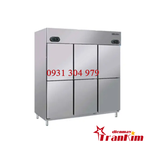 - Tủ đông mát 6 cánh có tính năng rã đông bằng khí gas nóng.