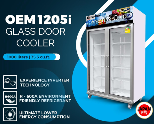 TỦ MÁT 2 CÁNH SANDEN INTERCOOL OEM-1205i INVERTER 1000L Máy nén công nghệ Inverter cực êm, làm lạnh nhanh và tiết kiệm điện
